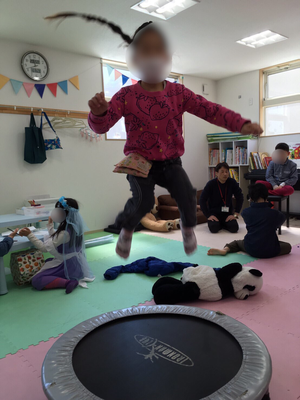 午前中はお勉強を頑張ってから、お部屋の中で好きな遊びをしました😉新一年生のお友達もトランポリンや魚釣りゲームなど目新しいおもちゃに興味津々👀💖臆することなく部屋中探索してくれました☺️
