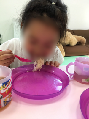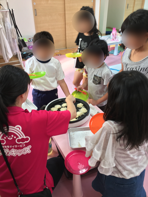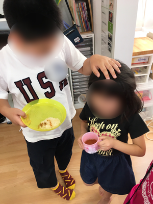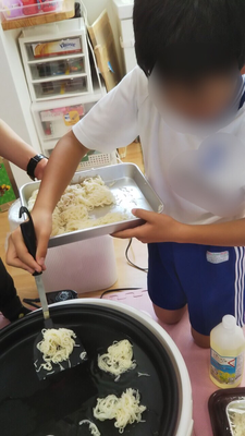 子ども達にはホットプレートに一口大のそうめんを入れてもらう作業、出来上がったそうめんスナックに自分好みの味付け(コンソメ、カレー、塩)をしてもらう作業をしてもらいました🍴