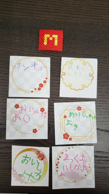 スタッフが「お店のお兄さん、お姉さん達が一生懸命作ってくれたんだよ😊ありがとうの気持ちを伝えたいね!」とお話をすると、食後にマクドナルドのロゴをアイロンビーズで作ったり、メッセージを書いてくれたお子様がいました👧👦✨